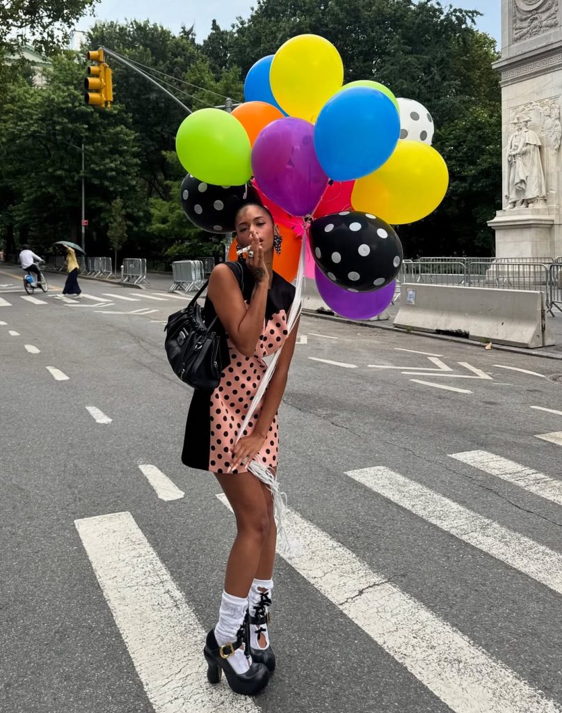 Estilista y creadora de contenido neoyorquina, Sierra Renas combina un universo pop y colorido con un ADN decididamente streetwear. Su estilo vivo, gráfico y casi cartoon refleja a la perfección el ritmo trepidante de la ciudad.