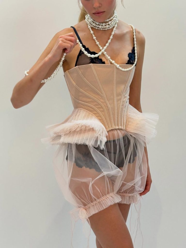 Aunque su estilo personal es bastante minimalista, su trabajo se inspira mucho del sportswear y de la danza. Le gusta jugar con la puesta en escena de los cuerpos, utilizando los calcetines como firma y la piel como materia prima. Esta apasionada de las prendas icónicas consigue dar una nueva vida a piezas ya olvidadas, y su arte para superponer prendas y ropa interior te inspirará este otoño.