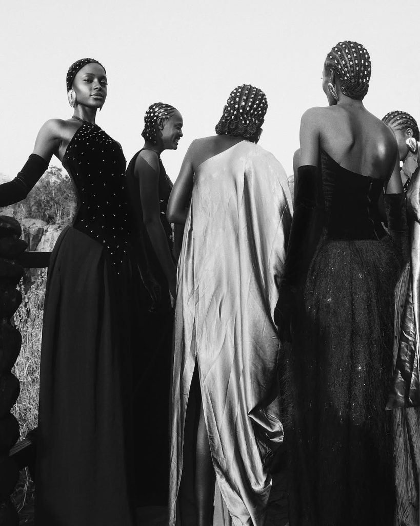 Uno de los creadores sudafricanos más importantes, Thebe Magugu, lleva desarrollando desde hace diez años lo que él describe como una «moda afro-enciclopédica». Ganador del Premio LVMH en 2019, varios de sus diseños ya forman parte de las colecciones permanentes del Costume Institute de Nueva York, inscribiendo su trabajo en la historia de la moda contemporánea.