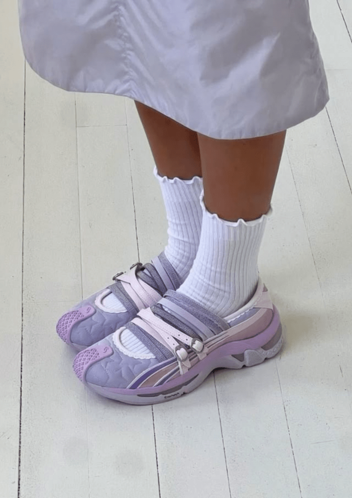 La danesa Cecilie Bahnsen es una figura emblemática del estilo ballet-core, y ya ha colaborado varias veces con Asics, arrastrando hacia esta tendencia a una nueva generación de marcas como Sandy Liang, que ha codiseñado un modelo junto a Salomon.
