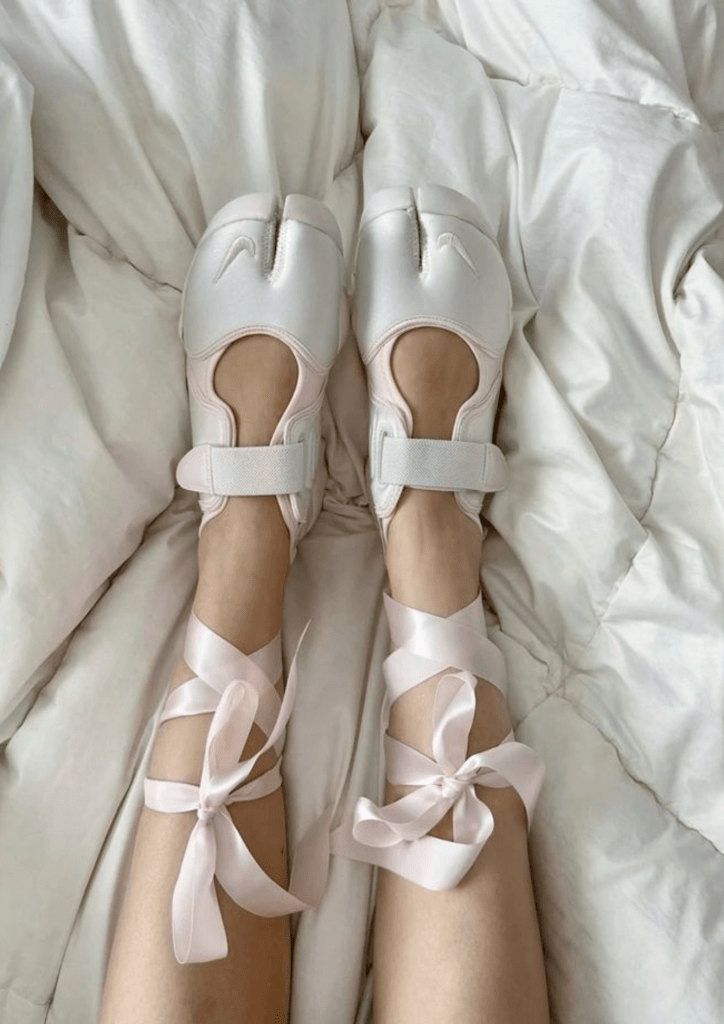 El modelo de Adidas, la Taekwondo Mei, retoma las formas de un modelo Y2K que hoy en día es más bien raro, añadiendo un cordón atado al tobillo que evoca sutilmente la estética de la bailarina clásica. Por su parte, Puma apuesta por la Speedcat, un modelo icónico reinterpretado en color plateado y con un toque claramente futurista. La Mostro, en cambio, se transforma en una Mary Jane ultra técnica. Los amantes de las tabis, que se inspiran del calzado tradicional japonés, esperan con impaciencia el anunciado regreso de la Nike Air Rift, que será sin duda una de las zapatillas estrella del año 2025.