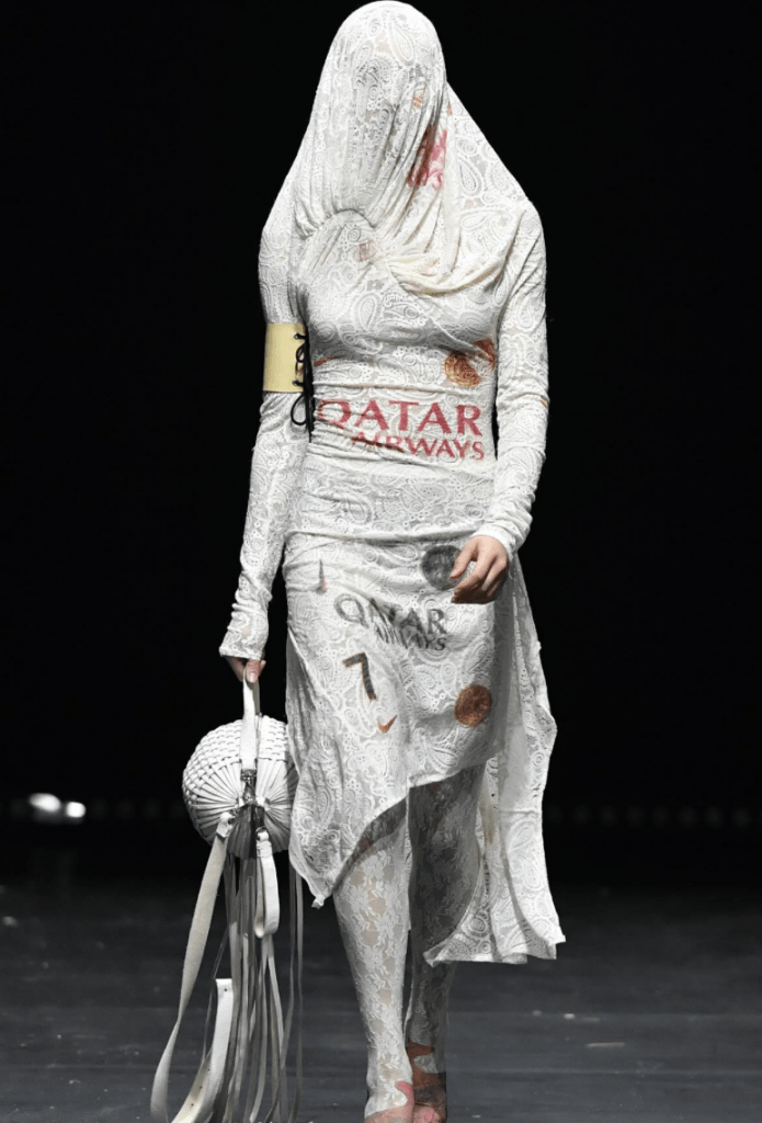 Aunque el maillot de fútbol sigue inspirando a las marcas, las firmas más vanguardistas lo están reinventando completamente. En Koché, las camisetas se presentan en forma de delicada nuisette con un estilo patchwork que combina elegancia y sportswear. Por su parte, la diseñadora brasileña Renata Brenha explora la versatilidad de esta prenda, plisándola para crear un pantalón fluido.