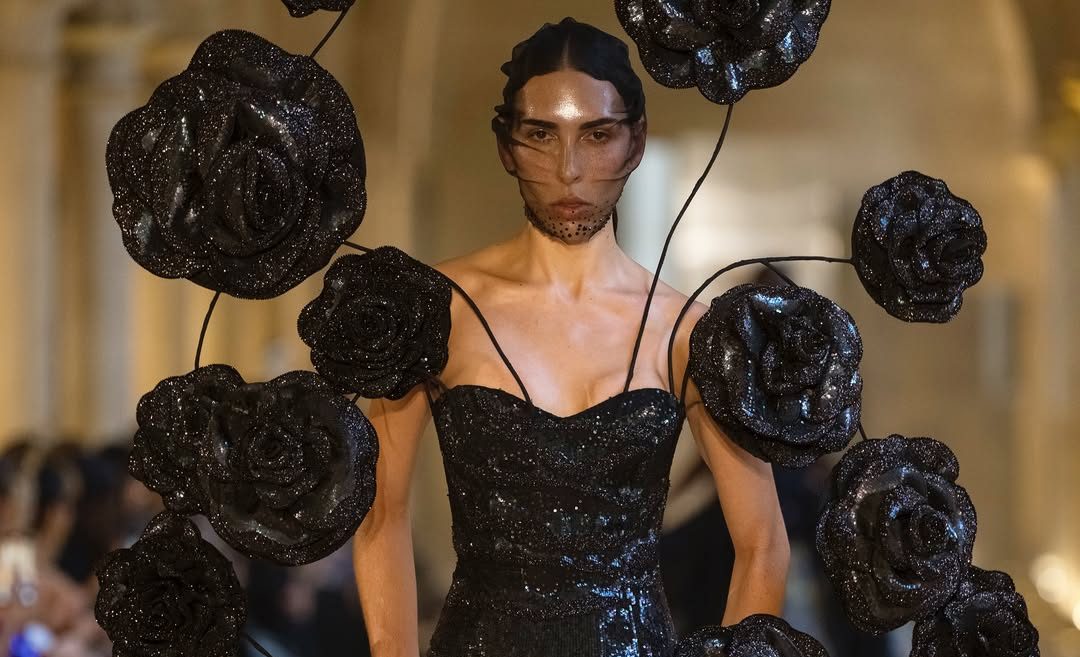 Los vestidos negros impresionan por su amplitud, haciendo eco del legado arquitectónico de Cristóbal Balenciaga. En el extremo contrario, vestidos de gala de tonos ácidos (rosa empolvado, amarillo pollito, azul celeste) desfilan como muñecas de porcelana bajo los focos.El humor nunca está lejos: un conjunto de tela encerada con flores, acompañado por un bolso del mismo estampado, rinde homenaje a los manteles de la abuela de Demna, recordando que incluso en la alta costura, lo kitsch puede volverse sublime.