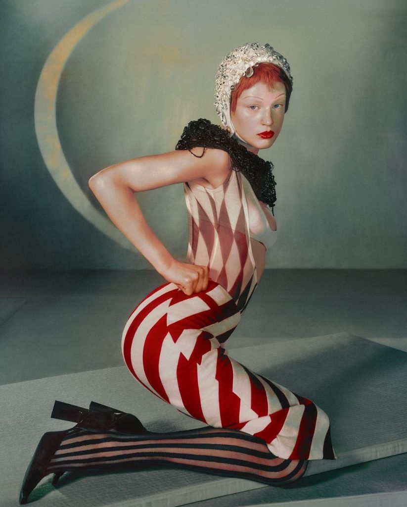 Personaje emblemático de la Commedia dell’arte, Arlequín simboliza la astucia, la ligereza y la libertad de tono. Valores que hoy en día cobran un nuevo significado. En la moda contemporánea, este motivo geométrico multicolor evoca tanto un traje de escena como la búsqueda de la excentricidad. En 2025, los rombos se inscriben en la corriente circus-core, que reivindica el imaginario del circo y, con él, su exuberancia.