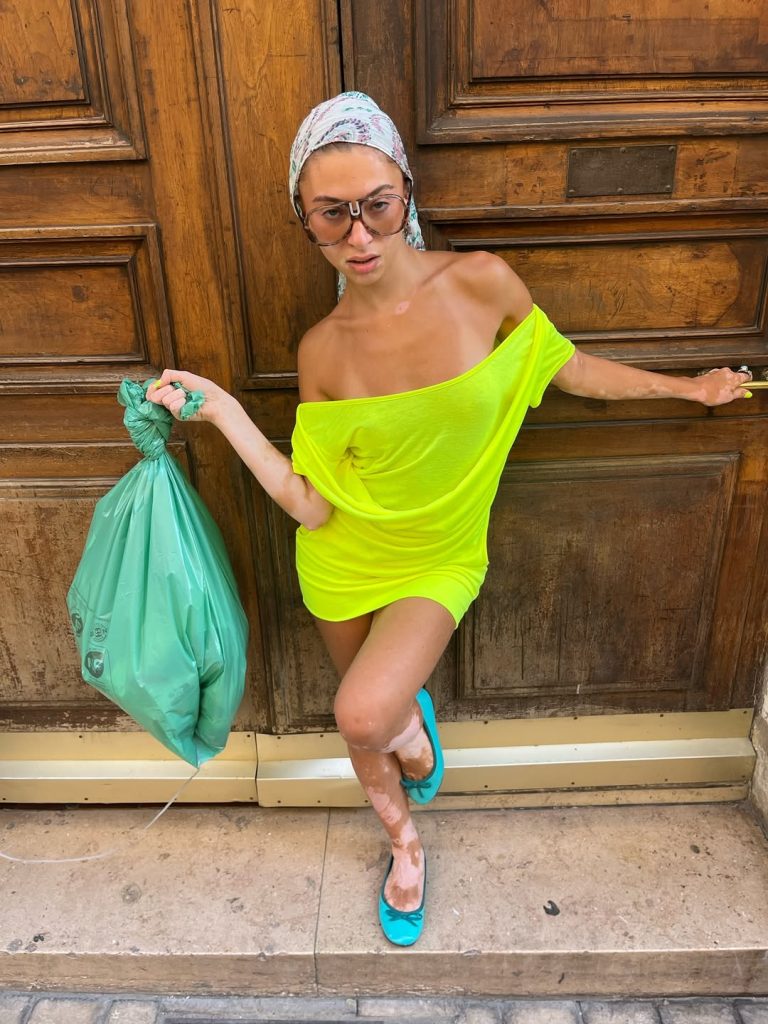 El «cunti cunta», una expresión creada por Loeva, cofundadora de las JUDE Party, cristaliza también una nueva forma de abordar el neón. Un estilo que se opone frontalmente a la clean girl:  vestido asimétrico amarillo ácido, minishort y bañador fluorescentes llevados sin complejos, joyas XXL con un aire completamente ochentero…Los tonos llamativos no son un simple detalle sino una forma de jugar con el kitsch y de afirmar una identidad muy colorida.