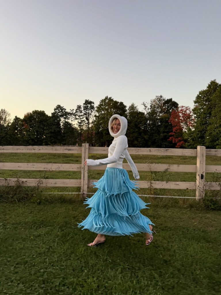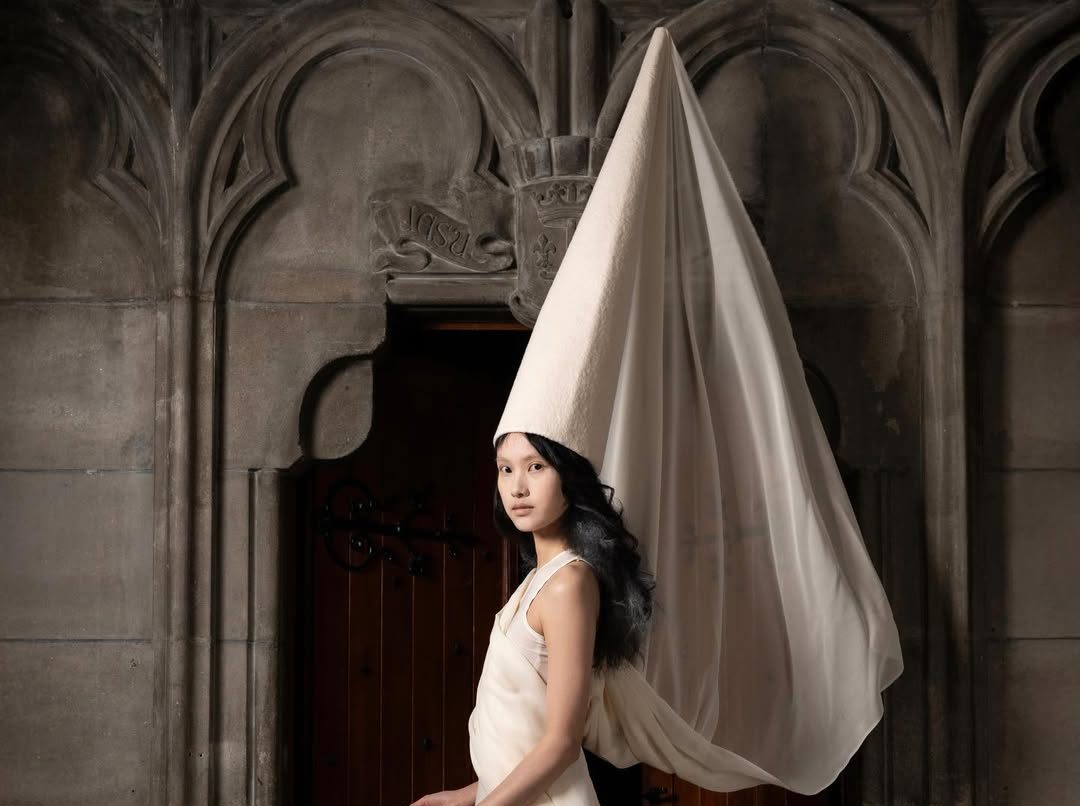 La capucha se ha convertido en uno de sus elementos distintivos, reinterpretada e integrada en vestidos o abrigos como una extensión natural de la silueta. Lejos de la nostalgia, Mulier propone una lectura radicalmente contemporánea de Alaïa.