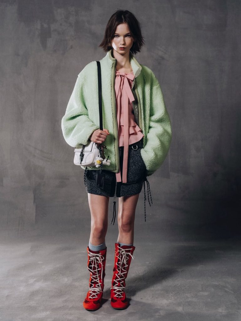En cuanto al estilismo, los modelos juegan con diferentes influencias: colores vivos, tonos pastel y motivos florales crean looks que evocan al mismo tiempo la adolescencia y la elegancia de las mujeres más maduras. De esta mezcla inesperada surge una cierta melancolía, como un diálogo entre edades y temporalidades.