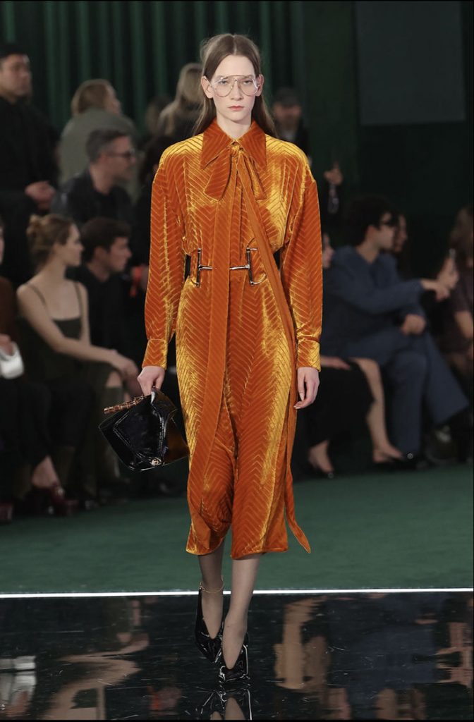 Hoy en día, la corbata regresa con fuerza gracias a la tendencia officewear, con la que, como de nuevo en Saint Laurent (otoño/invierno 2025), acompaña a trajes amplios, interpretando elementos del vestuario masculino sin perder elegancia. El traje de corbata se convierte en un símbolo de poder y estilo, llevado con la misma autoridad por hombres y mujeres.