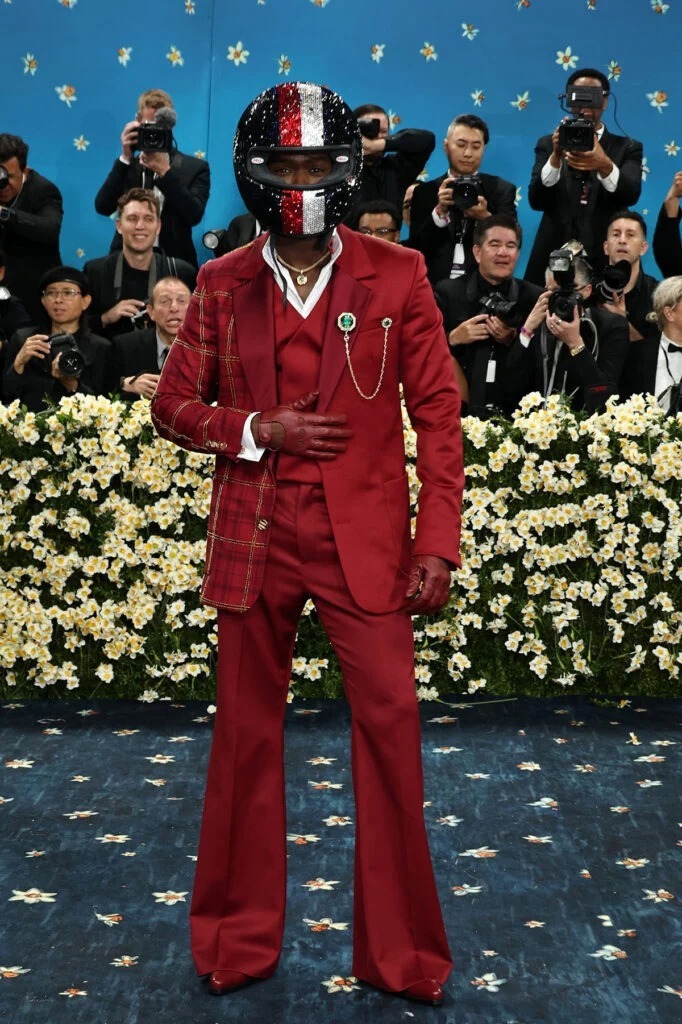 Damson Idris protagonizó una de las entradas más espectaculares de esta edición de la gala. El actor llegó a las escaleras del Met Gala al volante de un Fórmula 1, vestido con un mono de piloto y un casco en la cabeza. Este detalle mantuvo su anonimato hasta los últimos segundos y generó expectación hasta el reveal final, cuando, asistido por dos ayudantes, dejó caer el mono para desvelar un traje de tres piezas de color burdeos diseñado por Tommy Hilfiger. Versátiles, los guantes que llevaba a bordo del Fórmula 1 completaron a la perfección su look de dandy.